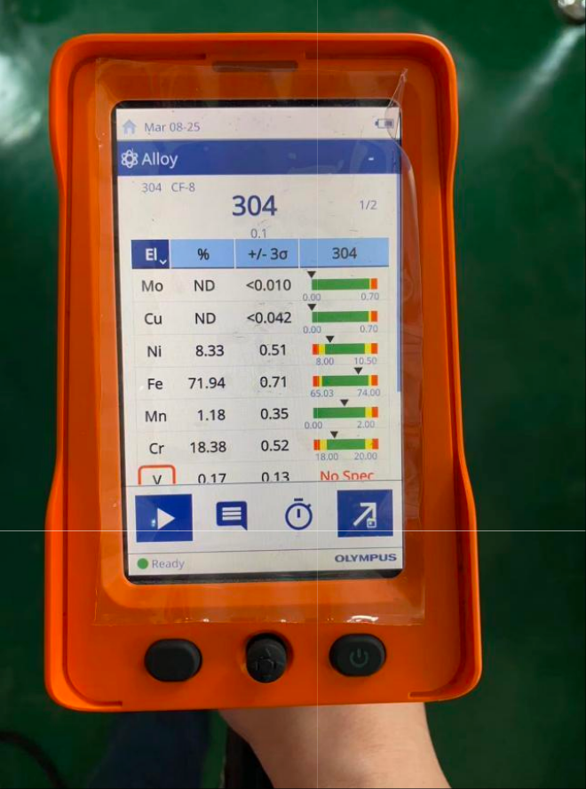 1. Jera's Lab use the XRF machine to check the primary alloying elements of the stainless steel.