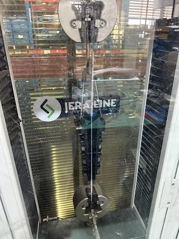 Endurance test on failure tension testing equipment under mechanical and thermal stresses with oscillation stress has different values according to standard IEC 61284 for overhead fiber optic cable, and accessories.