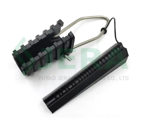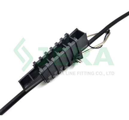 ADSS cable tension clamp STI either called aerial adss clamp, is developing to tension and anchor ftth round adss cable on the intermediate or down lead routes during outdoor aerial telecommunication line constructions.