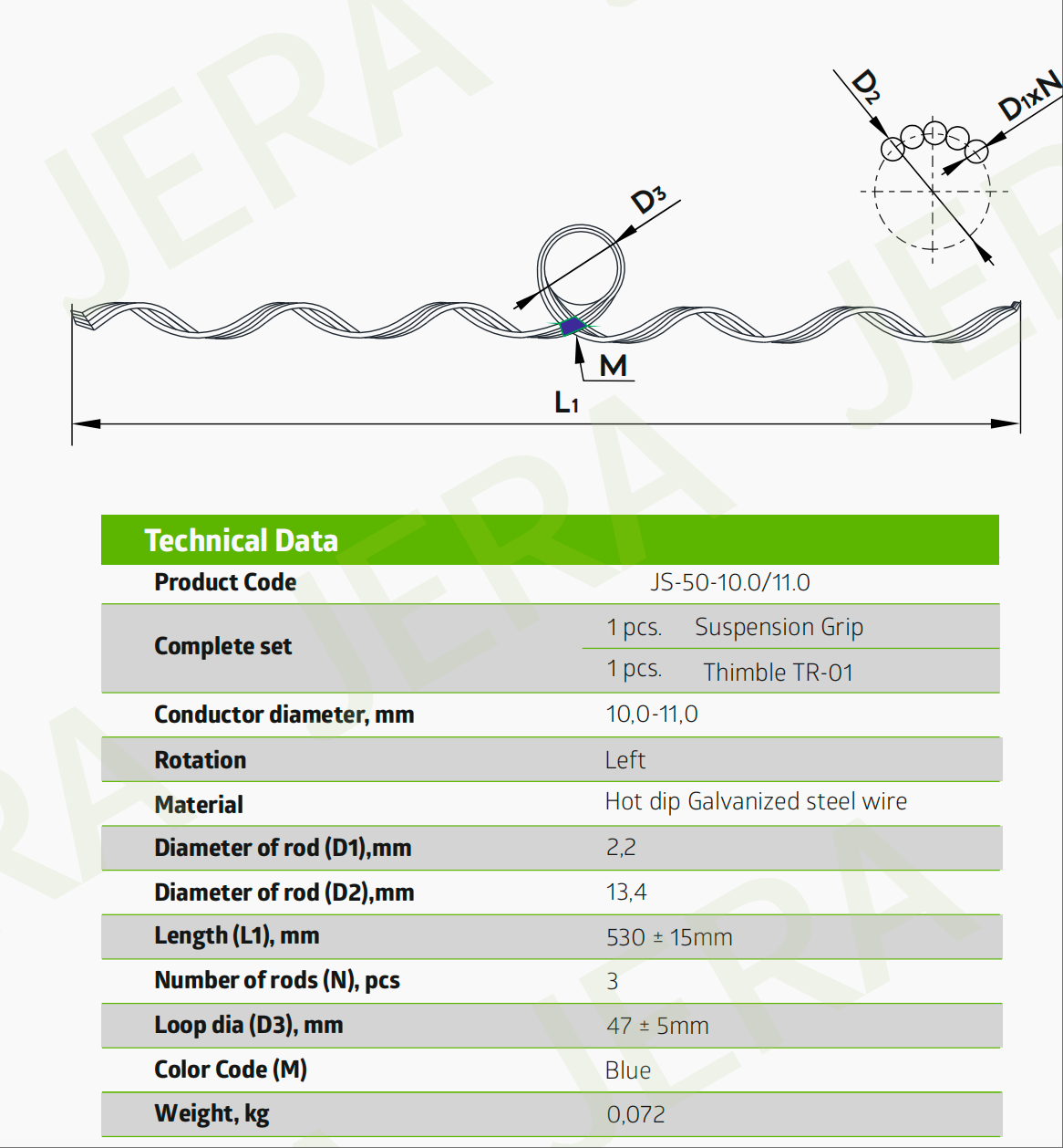 Jera JS-X ADSS cable suspension grips were developed to secure ADSS cable intermediate pole on the central loop routes fiber optical cable line.