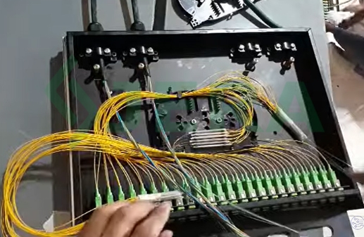 Fiber optical patch panel other called fiber optical termination frame, is designed to distribute, manage and protect fiber cores during telecom networks, in CATV equipment rooms or network equipment room. This fiber optical patch panel has four input ports for feeder cables, and it can accommodate up to 24 of fiber core connections base on SC/APC, LC/Duplex, SC/UPC types patch cords or adapters.