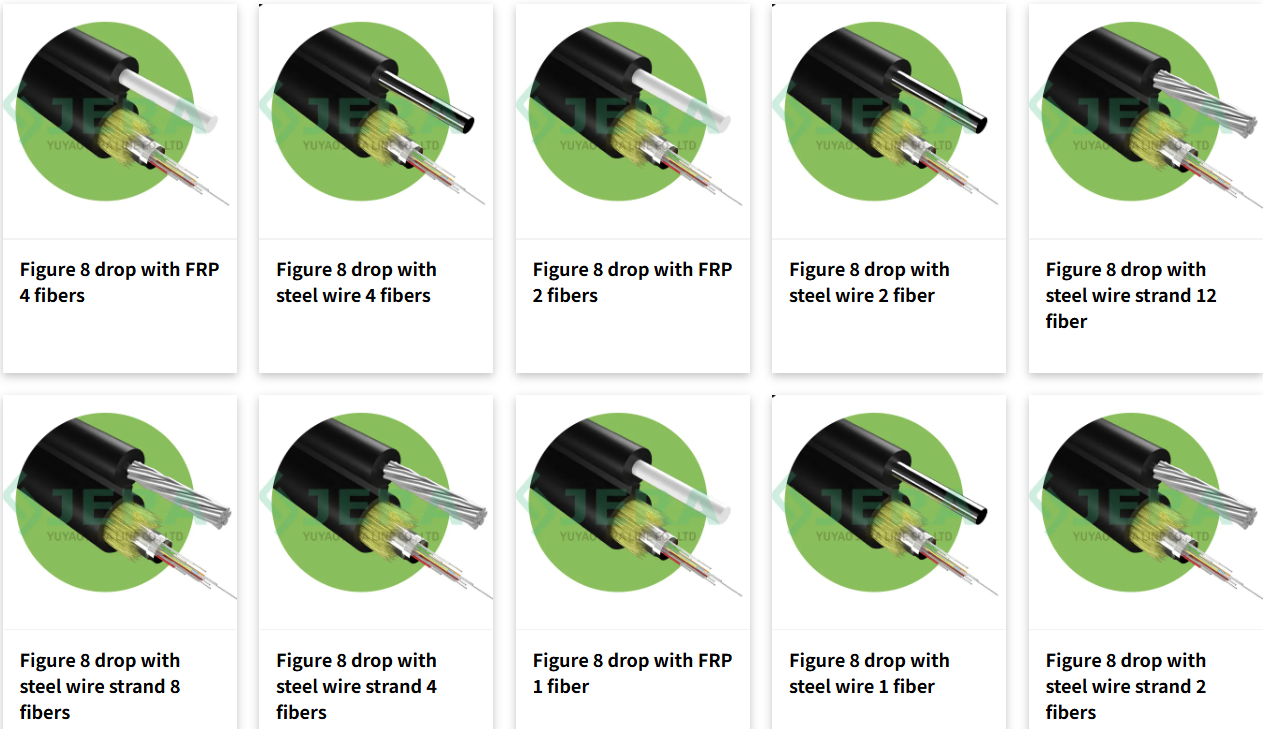 Figure-8 drop cables are a specialized solution optimized for aerial FTTH deployments, named for their distinctive cross-section that resembles the number “8”. One lobe of the figure-8 houses the fiber cores and strength members, while the other lobe contains a steel messenger wire—an integrated support structure that eliminates the need for separate suspension strands. This all-in-one design streamlines installation and reduces labor costs for aerial runs between utility poles and buildings.