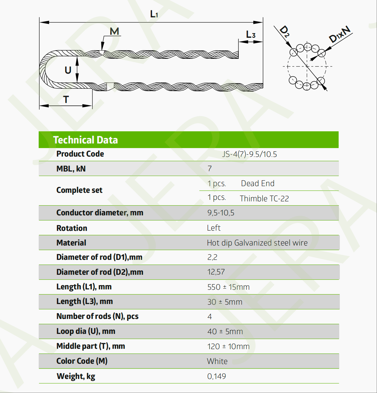 Offered in galvanized steel or stainless steel to match the messenger strand
