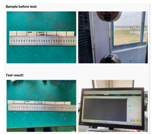 2. Tensile strength and elongation test according to IEC 61284-1997