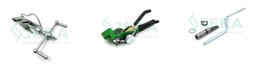 Prepare the banding and tools: Cut the stainless steel banding to the required length and prepare a tensioning tool and a buckling tool.